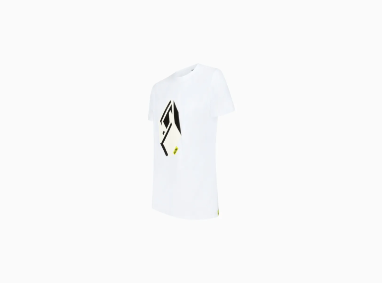 - 노란색의 RNLT 우븐 라벨 (뒷면 티셔츠 하단)